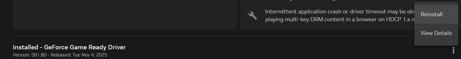· Open the NVIDIA App - [Drivers], find an older driver version, and select [Reinstall].