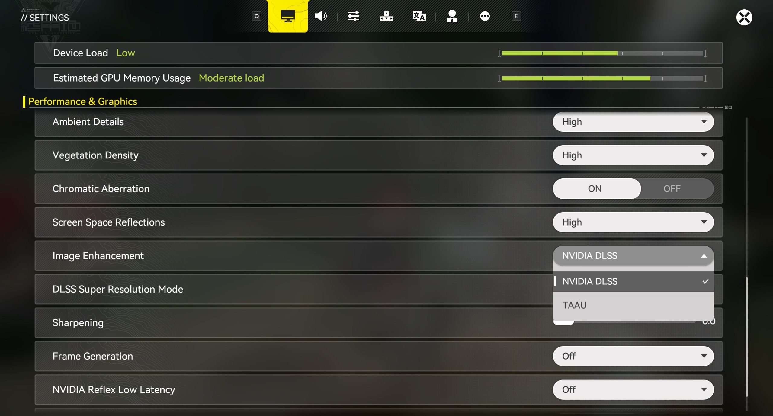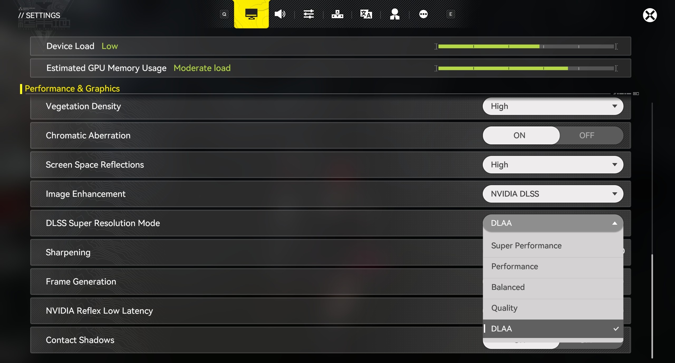 Method 1: Within Arknights: Endfield - Go to [Settings]- [Performance & Graphics] - [Image Quality Enhancement], select [NVIDIA DLSS], and adjust the [DLSS Super Resolution Mode] to an option suitable for your device's load.