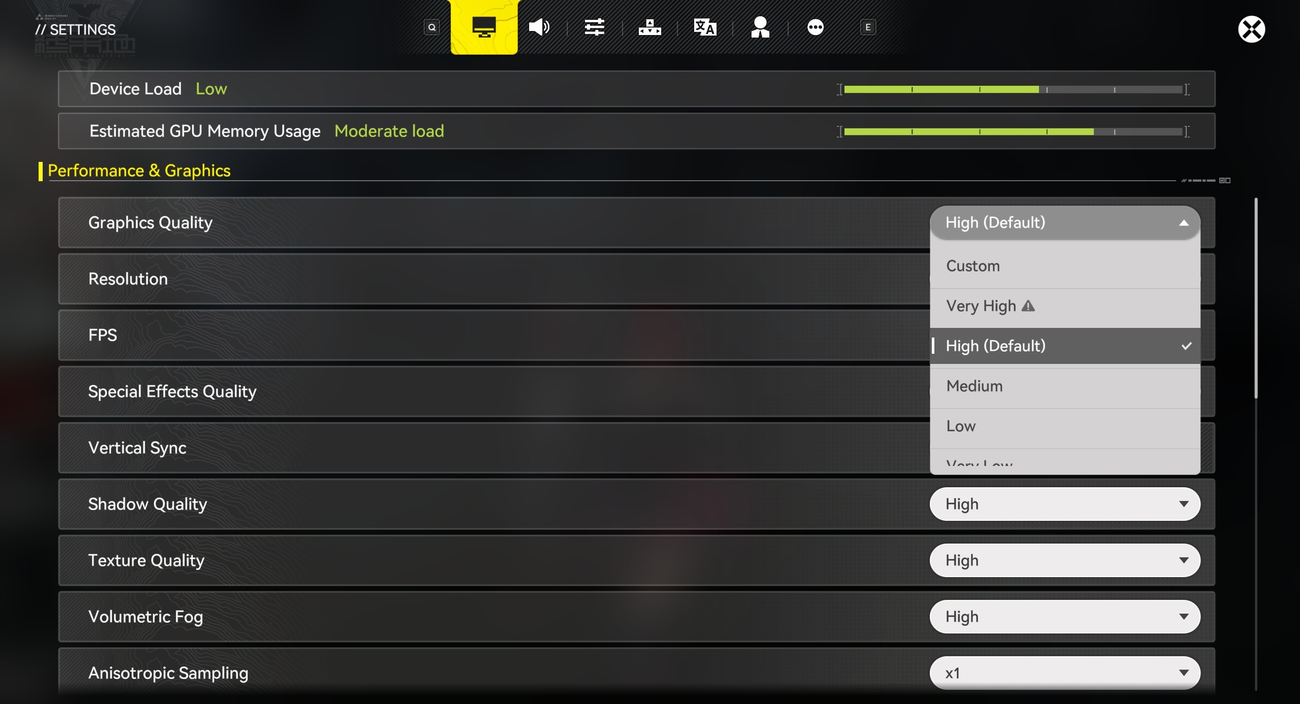 Within Arknights: Endfield - Go to [Settings] - [Performance & Graphics] - [Graphics Quality].