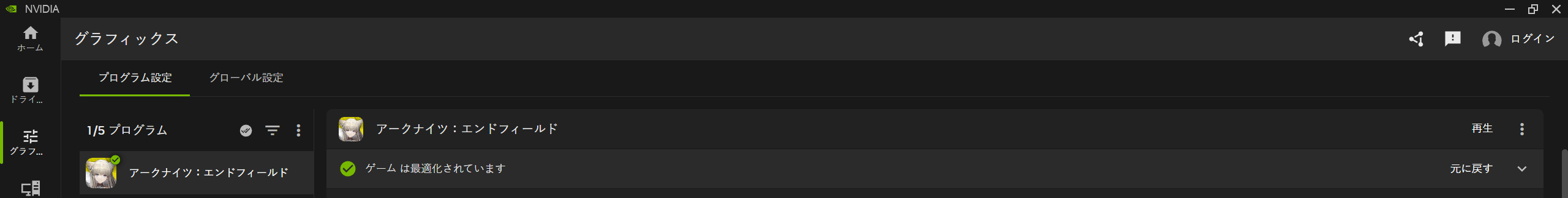 ・NVIDIA Appを開く -【グラフィックス】-【プログラム設定】-『アークナイツ:エンドフィールド』を選択