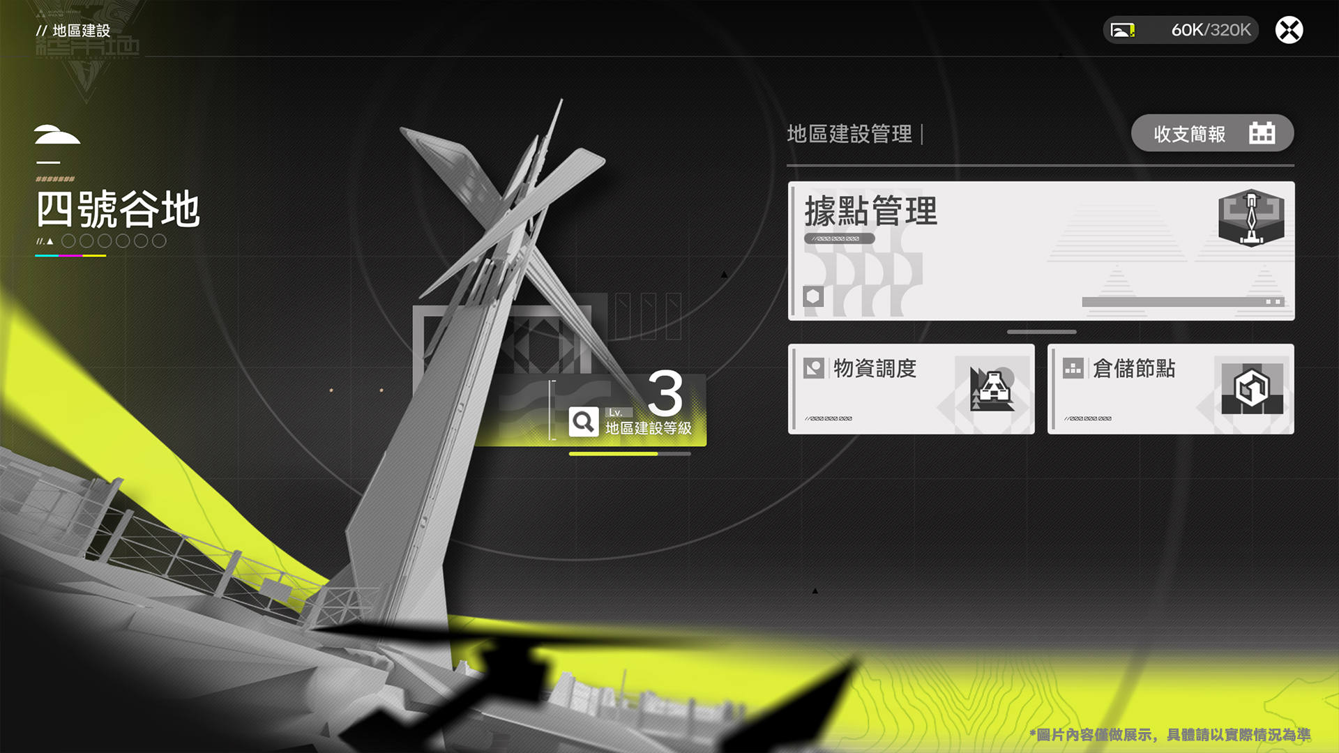 在「全面測試」中,優化了「據點」玩法的循環邏輯。現在,管理員可透過供貨交易獲得據點產出的地區調度券,進而升級並擴大據點規模,以提升據點的地區調度券生產能力。管理員可以使用地區調度券發展工業,以便製作出更多的貨物為據點供貨,從而達到生產和收益的正向循環。