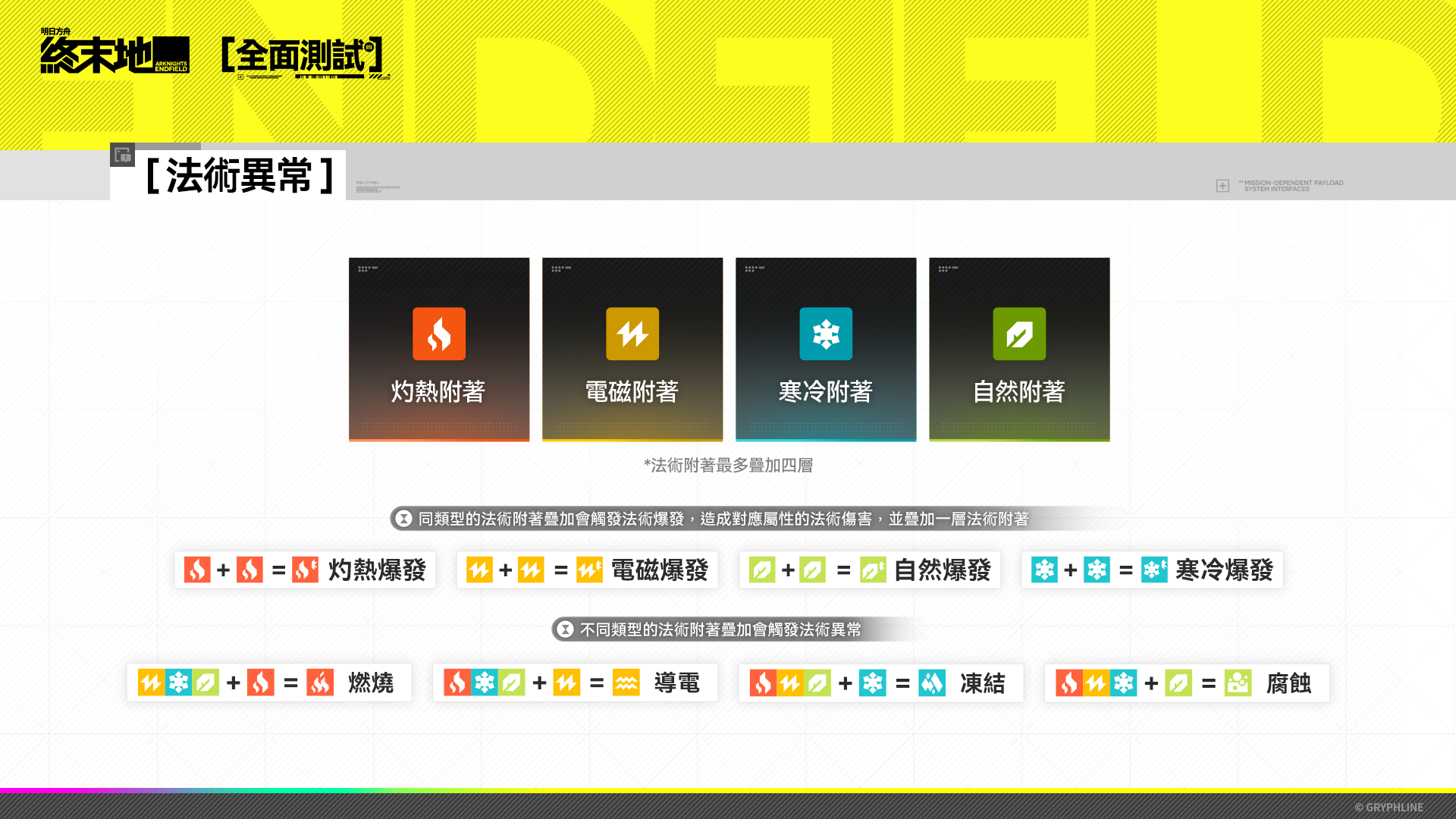 法術異常:新增「法術附著」層數機制(最多可疊加4層)。對敵人重複施加同種「法術附著」會產生「法術爆發」,並疊加「法術附著」層數;若隨後施加另一種「法術附著」,則會消耗掉先前所有的「法術附著」,產生效果各異的法術異常效果。